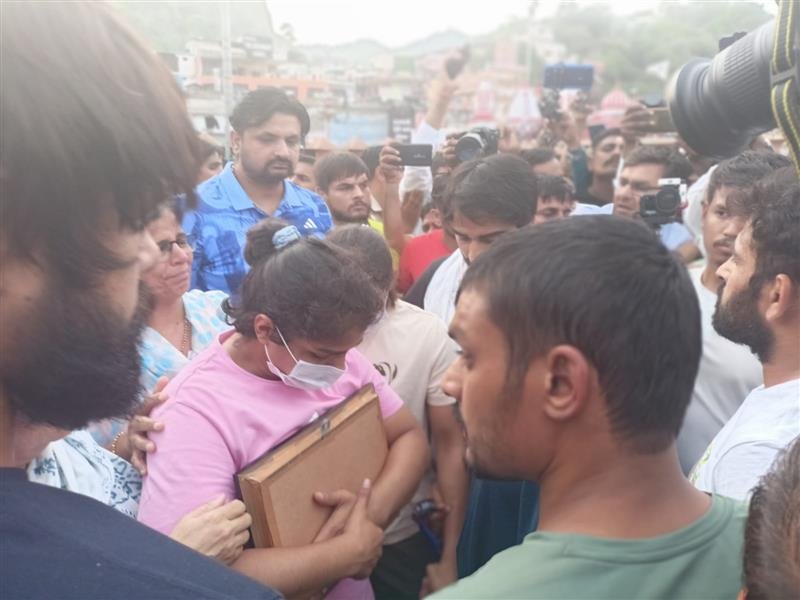 ਭਾਰਤੀ ਕੁਸ਼ਤੀ ਫੈਡਰੇਸ਼ਨ ਦੇ ਪ੍ਰਧਾਨ ਤੇ ਭਾਜਪਾ ਸੰਸਦ ਮੈਂਬਰ ਬ੍ਰਿਜ ਭੂਸ਼ਣ ਸ਼ਰਨ ਸਿੰਘ ਨੂੰ ਜਿਨਸੀ ਸ਼ੋਸ਼ਣ ਮਾਮਲੇ ਵਿੱਚ ਹੁਣ ਤੱਕ ਗ੍ਰਿਫ਼ਤਾਰ ਨਾ ਕਰਨ ਤੇ ਐਤਵਾਰ ਨੂੰ ਨਵੇਂ ਸੰਸਦ ਭਵਨ ਵੱਲ ਮਾਰਚ ਦੌਰਾਨ ਪੁਲੀਸ ਵੱਲੋਂ ਕੀਤੀ ਵਧੀਕੀ ਦੇ ਰੋਸ ਵਜੋਂ ਆਪਣੇ ਤਗ਼ਮੇ ਗੰਗਾ ਵਿੱਚ ਜਲਪ੍ਰਵਾਹ ਕਰਨ ਲਈ ਹਰਿ ਕੀ ਪੌੜੀ ਪੁੱਜੇ ਪਹਿਲਵਾਨਾਂ ਨੇ ਅੱਜ ਕਿਸਾਨ ਆਗੂ ਨਰੇਸ਼ ਟਿਕੈਤ ਦੇ ਦਖਲ ਮਗਰੋਂ ਐਨ ਆਖਰੀ ਮੌਕੇ ਆਪਣੀ ਇਹ ਯੋਜਨਾ ਮੁਲਤਵੀ ਕਰ ਦਿੱਤੀ। ਕਿਸਾਨ ਆਗੂ ਨੇ ਪਹਿਲਵਾਨਾਂ ਤੋਂ ਤਗ਼ਮੇ ਲੈ ਕੇ ਆਪਣੇ ਕੋਲ ਰੱਖ ਲਏ। ਟਿਕੈਤ ਤੇ ਪਹਿਲਵਾਨਾਂ ਨੇ ਸਰਕਾਰ ਨੂੰ ਮੰਗਾਂ ਮੰਨਣ ਲਈ ਪੰਜ ਦਿਨ ਦਾ ਅਲਟੀਮੇਟਮ ਦਿੰਦਿਆਂ ਕਿਹਾ ਕਿ ਜੇਕਰ ਸਰਕਾਰ ਨਾਕਾਮ ਰਹੀ ਤਾਂ ਉਹ ਗੰਗਾ ਵਿੱਚ ਤਗ਼ਮੇ ਜਲਪ੍ਰਵਾਹ ਕਰ ਦੇਣਗੇ।-ਪੀਟੀਆਈ