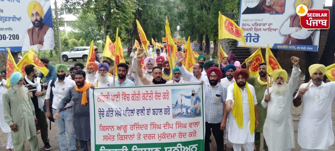 ਦਲਜੀਤ ਕੌਰ/ਚੰਡੀਗੜ੍ਹ/ਫਰੀਦਕੋਟ, 5 ਜੁਲਾਈ, 2023: ਕਿਰਤੀ ਕਿਸਾਨ ਯੂਨੀਅਨ ਨੇ ਮਾਲਵੇ ਦੇ ਵੱਡੇ ਹਿੱਸੇ ‘ਚ ਕਰੀਬ ਤਿੰਨ ਦਹਾਕਿਆਂ ਤੋਂ ਮਿਲ ਰਹੇ ਨਹਿਰੀ ਪਾਣੀ ਨੂੰ ਮੋਘੇ ਓੁੱਚੇ ਕਰਕੇ ਕੀਤੀ ਕਟੌਤੀ ਖਿਲਾਫ਼ ਅਤੇ ਕਿਸਾਨ ਆਗੂ ਰਜਿੰਦਰ ਸਿੰਘ ਦੀਪ ਸਿੰਘ ਵਾਲਾ ਖਿਲਾਫ ਦਰਜ ਪਰਚਾ ਰੱਦ ਕਰਾਉਣ ਲਈ ਫਰੀਦਕੋਟ ‘ਚ ਜੋਰਦਾਰ ਮੁਜਾਹਰਾ ਕਰਦਿਆਂ ਐਕਸੀਅਨ ਨਹਿਰੀ ਵਿਭਾਗ ਦਾ ਘਿਰਾਓ ਕੀਤਾ।