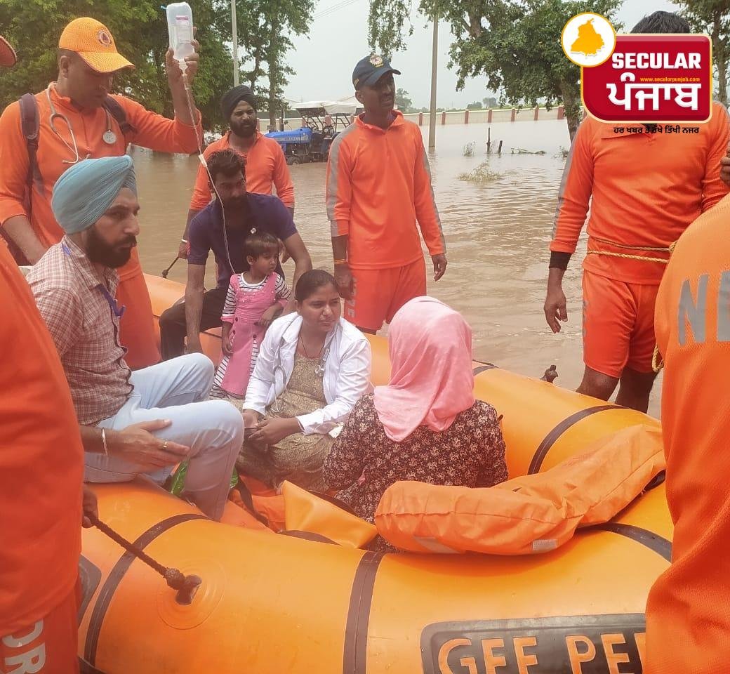 ਫੋਟੋਆਂ: ਜ਼ਿਲ੍ਹਾ ਪ੍ਰਸ਼ਾਸਨ ਸੰਗਰੂਰ ਵੱਲੋਂ ਐਨ ਡੀ ਆਰ ਐਫ ਦੇ ਸਹਿਯੋਗ ਨਾਲ ਹਾਈ ਰਿਸਕ ਗਰਭਵਤੀ ਔਰਤ ਨੂੰ ਕਿਸ਼ਤੀ ਰਾਹੀਂ ਐਂਬੂਲੈਂਸ ਵਿੱਚ ਸੁਰੱਖਿਅਤ ਹਸਪਤਾਲ ਲਿਜਾਉਣ ਦੀਆਂ ਤਸਵੀਰਾਂ। ਅਤੇ ਡਿਪਟੀ ਕਮਿਸ਼ਨਰ ਜਤਿੰਦਰ ਜੋਰਵਾਲ ਵੱਲੋਂ ਖਨੌਰੀ ਵਿਖੇ ਅਧਿਕਾਰੀਆਂ ਸਮੇਤ ਹੜ੍ਹਾਂ ਤੋਂ ਬਚਾਓ ਲਈ ਚੱਲ ਰਹੇ ਕਾਰਜਾਂ ਦਾ ਜਾਇਜ਼ਾ ਲੈਂਦੇ ਹੋਏ।
