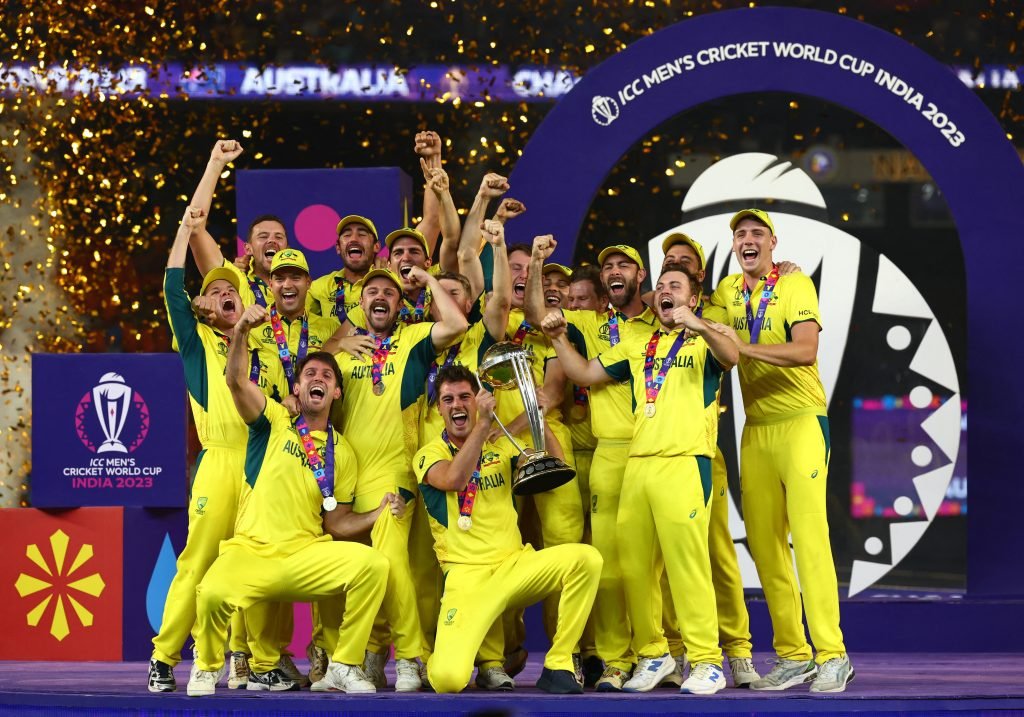 ਅਹਿਮਦਾਬਾਦ, 19 ਨਵੰਬਰ/ਆਸਟਰੇਲੀਆ ਨੇ ਟਰੈਵਿਸ ਹੈੱਡ ਦੇ ਸੈਂਕੜੇ ਸਦਕਾ ਭਾਰਤ ਨੂੰ 6 ਵਿਕਟਾਂ ਨਾਲ ਹਰਾ ਕੇ ਛੇਵੀਂ ਵਾਰ ਕ੍ਰਿਕਟ ਵਿਸ਼ਵ ਕੱਪ ਜਿੱਤ ਲਿਆ ਹੈ। ਟੀਮ ਨੇ ਜਿੱਤ ਲਈ ਲੋੜੀਂਦਾ 241 ਦੌੜਾਂ ਦਾ ਟੀਚਾ ਸਿਰਫ਼ 4 ਵਿਕਟਾਂ ਗੁਆ ਕੇ 43 ਓਵਰਾਂ ’ਚ ਹੀ ਪੂਰਾ ਕਰ ਲਿਆ। ਆਸਟਰੇਲੀਆ ਵੱਲੋਂ ਸਲਾਮੀ ਬੱਲੇਬਾਜ਼ ਟਰੈਵਿਸ ਹੈੱਡ ਨੇ 137 ਦੌੜਾਂ ਦੀ ਪਾਰੀ ਖੇਡੀ। ਟੀਮ ਵੱਲੋਂ ਮਾਰਨਸ ਲਾਬੂਸ਼ੇਨ ਨੇ ਨਾਬਾਦ 58 ਦੌੜਾਂ ਬਣਾਈਆਂ। ਇਸ ਤੋਂ ਪਹਿਲਾਂ ਅੱਜ ਇੱਥੇ ਨਰਿੰਦਰ ਮੋਦੀ ਸਟੇਡੀਅਮ ਵਿੱਚ ਆਸਟਰੇਲਿਆਈ ਟੀਮ ਦੇ ਕਪਤਾਨ ਪੈਟ ਕਮਿੰਸ ਨੇ ਟਾਸ ਜਿੱਤ ਕੇ ਪਹਿਲਾਂ ਫੀਲਡਿੰਗ ਕਰਨ ਦਾ ਫੈਸਲਾ ਕੀਤਾ। ਭਾਰਤੀ ਟੀਮ ਨੇ ਪਹਿਲਾਂ ਬੱਲੇਬਾਜ਼ੀ ਕਰਦਿਆਂ 50 ਓਵਰਾਂ ਵਿੱਚ ਸਾਰੀਆਂ ਵਿਕਟਾਂ ਗੁਆ ਕੇ 240 ਦੌੜਾਂ ਬਣਾਈਆਂ। ਭਾਰਤ ਵੱਲੋਂ ਕੇ.ਐੱਲ. ਰਾਹੁਲ ਨੇ ਸਭ ਤੋਂ ਵੱਧ 66 ਦੌੜਾਂ ਬਣਾਈਆਂ ਜਦਕਿ ਵਿਰਾਟ ਕੋਹਲੀ ਨੇ 54 ਦੌੜਾਂ ਬਣਾਈਆਂ। ਕਪਤਾਨ ਰੋਹਿਤ ਸ਼ਰਮਾ 47 ਦੌੜਾਂ ਬਣਾ ਕੇ ਪਵੈਲੀਅਨ ਪਰਤਿਆ। ਸੂਰਿਆਕੁਮਾਰ ਯਾਦਵ 18 ਅਤੇ ਕੁਲਦੀਪ ਯਾਦਵ ਨੇ 10 ਦੌੜਾਂ ਬਣਾਈਆਂ। ਆਸਟਰੇਲੀਆ ਵੱਲੋਂ ਮਿਸ਼ੇਲ ਸਟਾਰਕ ਨੇ 4 ਜਦਕਿ ਐਡਮ ਜ਼ੰਪਾ ਅਤੇ ਪੈਟ ਕਮਿੰਸ ਨੇ ਦੋ-ਦੋ ਵਿਕਟਾਂ ਲਈਆਂ। ਆਸਟਰੇਲੀਆ ਦੇ ਟਰੈਵਿਸ ਹੈੱਡ ਨੂੰ ‘ਪਲੇਅਰ ਆਫ ਦਿ ਮੈਚ’ ਜਦਕਿ ਭਾਰਤ ਦੇ ਵਿਰਾਟ ਕੋਹਲੀ ਨੂੰ ‘ਪਲੇਅਰ ਆਫ ਦਿ ਸਿਰੀਜ਼’ ਚੁਣਿਆ ਗਿਆ।