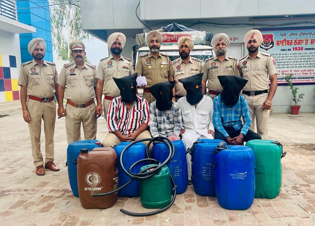 ਹੁਸ਼ਿਆਰਪੁਰ 30 ਮਈ ( ਤਰਸੇਮ ਦੀਵਾਨਾ ) ਇੰਸਪੈਕਟਰ ਉਕਾਰ ਸਿੰਘ ਬਰਾੜ ਮੁੱਖ ਅਫਸਰ ਥਾਣਾ ਟਾਡਾ ਜਿਲਾ ਹੁਸਿਆਰਪੁਰ ਨੇ ਦੱਸਿਆ ਕਿ ਸੀਨੀਅਰ ਪੁਲਿਸ ਕਪਤਾਨ ਹੁਸ਼ਿਆਰਪੁਰ ਸਰਤਾਜ ਸਿੰਘ ਚਾਹਲ ਆਈ ਪੀ ਐਸ ਨੇ ਜਿਲੇ ਅੰਦਰ ਮਾੜੇ ਅਨਸਰਾ ਉਪਰ ਕਾਬੂ ਪਾਉਣ ਲਈ ਵਿਸ਼ੇਸ਼ ਮੁਹਿੰਮ ਚਲਾਈ ਹੋਈ ਸੀ ਜਿਸ ਤਹਿਤ ਕੁਲਵੰਤ ਸਿੰਘ ਡੀ ਐਸ ਪੀ ਸਬ ਡਵੀਜਨ ਟਾਡਾ ਦੀ ਅਗਵਾਹੀ ਵਿਚ ਥਾਣਾ ਟਾਂਡਾ ਦੇ ਅਧੀਨ ਆਉਦੇ ਏਰੀਏ ਵਿੱਚ ਨਸ਼ਾ ਵੇਚਣ ਵਾਲੇ/ ਮਾੜੇ ਅਨਸਰਾ ਨੂੰ ਗ੍ਰਿਫਤਾਰ ਕਰਨ ਲਈ ਲਈ ਸੋਰਸ ਲਗਾ ਕੇ ਉਪਰਾਲੇ ਕੀਤੇ ਜਾ ਰਹੇ ਹਨ। ਪੁਲਿਸ ਅਧਿਕਾਰੀਆ ਨੇ ਦੱਸਿਆ ਕਿ ਐਸ.ਆਈ ਗੁਰਵਿੰਦਰ ਸਿੰਘ ਸਮੇਤ ਪੁਲਿਸ ਪਾਰਟੀ ਨੂੰ ਉਸ ਸਮੇਂ ਵੱਡੀ ਸਫਲਤਾ ਹਾਸਲ ਹੋਈ ਜਦੋਂ ਰੜਾ ਮੋੜ ਇੱਕ ਮਹਿੰਦਰਾ ਬੋਲੈਰੋ ਗੱਡੀ ਨੰਬਰ ਪੀ ਬੀ 2-ਸੀ ਆਰ-9704 ਨੂੰ ਰੋਕਿਆਂ ਜਿਸ ਵਿੱਚੋਂ 4 ਵਿਅਕਤੀਆ ਨੂੰ ਭਾਰੀ ਮਾਤਰਾ ਵਿੱਚ ਨਸ਼ੀਲੇ ਪਦਾਰਥ ਅਤੇ ਗੱਡੀ ਵਿੱਚ ਬਿਜਲੀ ਦੇ ਟਰਾਂਸਫਾਰਮਾਂ ਵਿੱਚੋਂ ਚੋਰੀ ਕੀਤੇ ਹੋਏ ਤੇਲ ਸਮੇਤ ਕਾਬੂ ਕੀਤਾ ਇਹਨਾ ਨੇ ਆਪਣੀ ਗੱਡੀ ਨੂੰ ਕਾਲੇ ਰੰਗ ਦੀ ਤਰਪਾਲ ਨਾਲ ਢੱਕ ਕੇ ਅੰਦਰ ਇਹ ਸਮਾਨ ਲਕੋਕੇ ਰੱਖਿਆਂ ਸੀ ਅਤੇ ਇਹਨਾ ਪਾਸੋ ਚੋਰੀਸ਼ੁਦਾ ਤੇਲ ਤੋਂ ਇਲਾਵਾ ਤੇਲ ਕੱਢਣ ਲਈ ਵਰਤਿਆ ਸਾਜੋ ਸਮਾਨ ਵੀ ਬ੍ਰਾਮਦ ਹੋਇਆ। ਇਹਨਾ ਫੜੇ ਗਏ ਵਿਅਕਤੀਆ ਨੇ ਆਂਪਣੇ ਇਸ ਚੋਰੀ ਦੇ ਧੰਦੇ ਨੂੰ ਇਲਾਕਾ ਥਾਣਾ ਟਾਂਡਾ ਜਿਲ੍ਹਾ ਹੁਸ਼ਿਆਰਪੁਰ ਤੋਂ ਹੋਰ ਵੱਖ-2 ਥਾਣਿਆਂ ਦੇ ਇਲਾਕਿਆਂ ਵਿੱਚੋਂ ਵੱਖ ਥਾਵਾ ਤੋ ਤੇਲ ਚੋਰੀ ਕੀਤਾ ਅਤੇ ਇਸ ਨੂੰ ਵੇਚ ਕੇ ਨਸ਼ੇ ਦੀ ਖਰੀਦੋ ਖਰੋਦ ਕਰਕੇ ਅਲੱਗ-2 ਜਗ੍ਹਾ ਨਸ਼ੇ ਦੀ ਸਪਾਲਈ ਵੀ ਕਰਦੇ ਸਨ। ਇਹਨਾ ਸਾਰਿਆ ਨੇ ਰਲ ਕੇ ਇੱਕ ਗੈਂਗ ਬਣਾਇਆ ਹੋਇਆਂ ਹੈ । ਇਹਨਾ ਵਿੱਚੋਂ ਕੁੱਝ ਵਿਅਕਤੀਆ ਦੇ ਖਿਲਾਫ ਮੁਕੱਦਮੇ ਦਰਜ ਹਨ ਤੇ ਹੁਣ ਜਮਾਨਤ ਤੇ ਬਾਹਰ ਆਏ ਹੋਏ ਹਨ। ਉਹਨਾਂ ਦੱਸਿਆ ਕਿ ਉਕਤ ਵਿਅਕਤੀਆ ਪਾਸੋਂ ਡੂੰਘਾਈ ਨਾਲ ਪੁੱਛ ਗਿੱਛ ਕੀਤੀ ਜਾ ਰਹੀ ਹੈ। ਉਹਨਾ ਦੱਸਿਆ ਕਿ ਫੜੇ ਗਏ ਵਿਅਕਤੀਆ ਨੂੰ ਅਦਾਲਤ ਵਿੱਚ ਪੇਸ ਕਰਕੇ ਤੇ ਪੁਲਿਸ ਰਿਮਾਂਡ ਹਾਸਲ ਕਰਕੇ ਅਗਲੀ ਤਫਤੀਸ ਕੀਤੀ ਜਾਵੇਗੀ ਕਿ ਇਹਨਾ ਨੇ ਨਸ਼ਾ ਅਤੇ ਚੋਰੀ ਸੁਦਾ ਤੇਲ ਕਿੱਥੋਂ-2 ਚੋਰੀ ਕੀਤਾ ਸੀ।