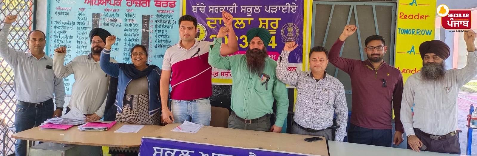 ਕੈਪਸ਼ਨ-ਸਰਕਾਰੀ ਸੀਨੀਅਰ ਸੈਕੰਡਰੀ ਬਾਗਪੁਰ-ਸਤੌਰ ਵਿਖੇ ਰੋਸ ਪ੍ਰਦਰਸ਼ਨ ਕਰਦੇ ਹੋਏ ਮੁਲਾਜ਼ਮ।