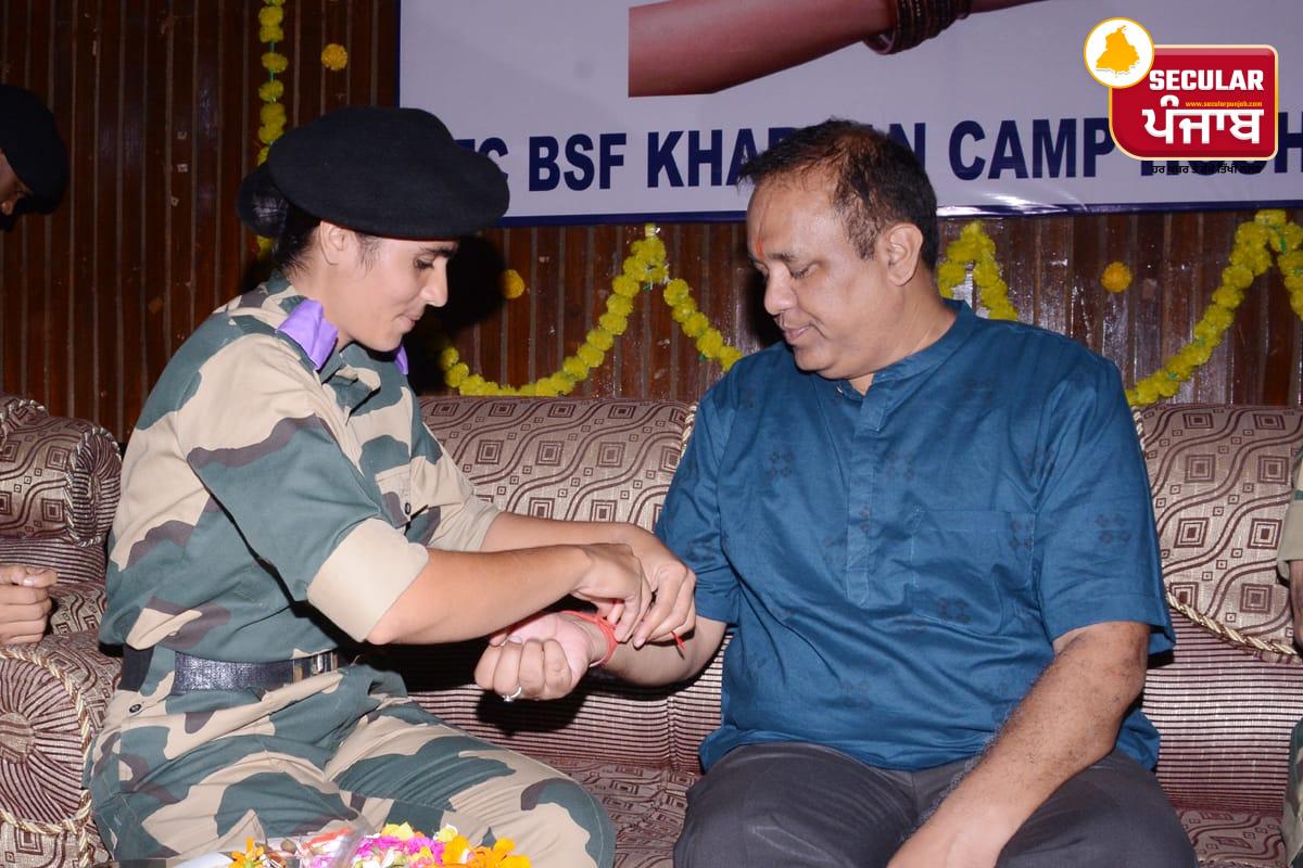ਉਹਨਾ ਕਿਹਾ ਕਿ ਮੌਜੂਦਾ ਸਮੇਂ ਵਿਚ ਵੀ ਮਾਂ ਦੁਰਗਾ ਦੀਆਂ ਕੁਝ ਅਜਿਹੀਆਂ ਹੀ ਔਰਤਾਂ ਸਰਹੱਦੀ ਸੁਰੱਖਿਆ ਬਲ ਰਾਹੀਂ ਦੇਸ਼ ਦੀਆਂ ਸਰਹੱਦਾਂ ਦੀ ਦੁਸ਼ਮਣਾਂ ਤੋਂ ਰਾਖੀ ਲਈ ਕੜਾਕੇ ਦੀ ਸਰਦੀ ਅਤੇ ਕੜਕਦੀ ਗਰਮੀ ਵਿਚ ਸਰਹੱਦਾਂ ‘ਤੇ ਪਹਿਰਾ ਦੇ ਰਹੀਆਂ ਹਨ। ਨੀਤੀ ਤਲਵਾੜ ਨੇ ਕਿਹਾ ਕਿ ਰੱਖੜੀ ਦੇ ਪਵਿੱਤਰ ਧਾਗੇ ਦੇ ਨਾਲ-ਨਾਲ ਅਸੀਂ ਆਪਣੇ ਭਰਾਵਾਂ ਦੇ ਗੁੱਟ ‘ਤੇ ਦੇਸ਼ ਦੀ ਰੱਖਿਆ ਕਰਨ ਦੀ ਕਸਮ ਦਾ ਧਾਗਾ ਵੀ ਬੰਨ੍ਹਿਆ ਹੈ।ਇਸ ਮੌਕੇ ਕੈਂਪਸ ਕਮਾਂਡੈਂਟ ਆਜ਼ਾਦ ਸਿੰਘ ਮਲਿਕ ਨੇ ਸਾਰੀਆਂ ਭੈਣਾਂ ਦਾ ਧੰਨਵਾਦ ਕਰਦਿਆਂ ਕਿਹਾ ਕਿ ਅਸੀਂ ਦੇਸ਼ ਦੇ ਲੋਕ  ਦੇਸ਼ ਦੇ ਵੱਖ-ਵੱਖ ਕੋਨੇ-ਕੋਨੇ ਆਪਣੀ ਮਾਤ ਭੂਮੀ ਦੀ ਰਾਖੀ ਲਈ ਯਤਨਸ਼ੀਲ ਹਾ ਅਤੇ ਇਹ ਵੀ ਹੈ ਕਿ ਤਿਉਹਾਰਾਂ ਦੌਰਾਨ ਹਰ ਸੈਨਿਕ ਨੂੰ ਪਰਿਵਾਰ ਦੀ ਘਾਟ ਮਹਿਸੂਸ ਹੁੰਦੀ ਹੈ, ਪਰ ਦੇਸ਼ ਵਾਸੀਆਂ ਵੱਲੋਂ ਦਿੱਤਾ ਗਿਆ ਇਹ ਪਿਆਰ ਹਮੇਸ਼ਾ ਸਾਡੇ ਨਾਲ ਰਹੇਗਾ ਅਤੇ ਇਸ ਜ਼ਿੰਮੇਵਾਰੀ ਨੂੰ ਨਿਭਾਉਣ ਦੀ ਪ੍ਰੇਰਨਾ ਦਿੰਦਾ ਹੈ। ਨੀਤੀ ਤਲਵਾੜ ਨੇ ਬੀ.ਐਸ.ਐਫ ਨਾਲ ਪਿਛਲੇ 14 ਸਾਲਾਂ ਤੋਂ ਜੋ ਰਿਸ਼ਤਾ ਕਾਇਮ ਕੀਤਾ ਹੈ, ਉਹ ਭਵਿੱਖ ਵਿੱਚ ਵੀ ਇਸੇ ਤਰ੍ਹਾਂ ਜਾਰੀ ਰਹੇਗਾ, ਇਸ ਮੌਕੇ ਅਸ਼ਵਨੀ ਓਹਰੀ, ਪ੍ਰਿਆ ਸੈਣੀ ਸਰਬਜੀਤ ਕੌਰ ਸ਼ਿਵਮ ਓਹਰੀ ਰਾਕੇਸ਼ ਸਹਾਰਨ, ਭੁਪਿੰਦਰ ਸਿੰਘ, ਊਸ਼ਾ ਕਿਰਨ ਸੂਦ, ਮੁਸਕਾਨ ਪਰਾਸ਼ਰ ਆਦਿ ਵੀ ਹਾਜ਼ਰ ਸਨ।