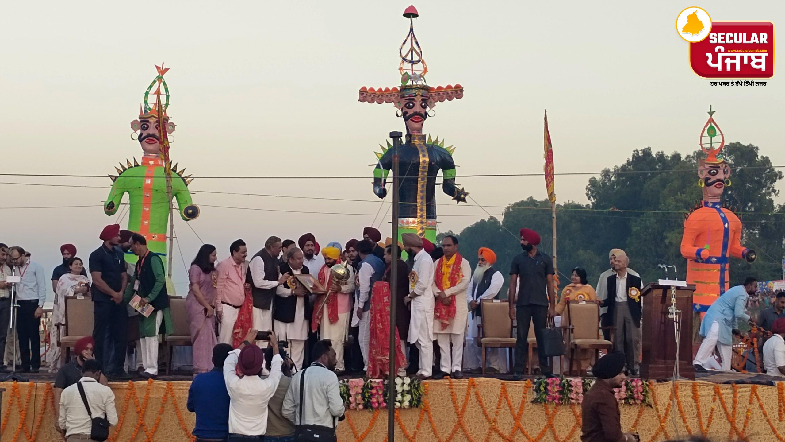 ਇਸ ਮੌਕੇ ਆਪਣੇ ਸੰਬੋਧਨ ਵਿੱਚ ਮੁੱਖ ਮੰਤਰੀ ਪੰਜਾਬੀ ਭਗਵੰਤ ਮਾਨ ਨੇ ਕਿਹਾ ਕਿ ਦੁਸ਼ਹਿਰਾ ਮੇਲਾ ਬਦੀ ਤੇ ਨੇਕੀ ਦੀ ਜਿੱਤ ਦਾ ਪ੍ਰਤੀਕ ਹੈ ਮੁੱਖ ਮੰਤਰੀ ਨੇ ਐਲਾਨ ਕੀਤਾ ਕਿ ਦੋਵੇਂ ਪਾਸੇ ਪੌੜੀਆਂ ਸਟੇਡੀਅਮ ਵਾਂਗ ਬਣਾਈਆਂ ਜਾਣ,ਮੈਡੀਕਲ ਕਾਲਜ ਦੀ ਮੰਗ ਬਾਰੇ ਉਨ੍ਹਾਂ ਕਿਹਾ ਕਿ ਹੁਸ਼ਿਆਰਪੁਰ ਦਾ ਮੈਡੀਕਲ ਕਾਲਜ ਵਿੱਚ ਅਗਲੇ ਸਾਲ ਕਲਾਸਾਂ ਸ਼ੁਰੂ ਹੋ ਜਾਣਗੀਆਂ ਹੁਸ਼ਿਆਰਪੁਰ ਦੀ ਸੁੰਦਰਤਾ ਲਈ ਹਰ ਪ੍ਰੋਜੈਕਟ ਮਨਜ਼ੂਰ ਕਰਨ ਦਾ ਭਰੋਸਾ ਦਿੱਤਾ ਸ਼ਾਮ 5:45 ਵਜੇ ਸੂਰਜ ਢੱਲਦੇ ਸਾਰ ਹੀ ਵਿਧੀਵਤ ਰੂਪ ‘ਚ ਧਾਰਮਿਕ ਰਸਮਾਂ ਪੂਰੀਆਂ ਕਰਦੇ ਹੋਏ ਰਾਵਣ ਦੇ ਪੁਤਲੇ ਨੂੰ ਜੈ ਸ਼੍ਰੀ ਰਾਮ ਦੇ ਜੈਕਾਰਿਆਂ ਦੀ ਗੂੰਜ ਵਿੱਚ ਭਗਵੰਤ ਮਾਨ ਮੁੱਖ ਮੰਤਰੀ ਪੰਜਾਬ ਨੇ ਰਿਮੋਟ ਦੇ ਬਟਨ ਦੱਬ ਕੇ ਅਗਨ ਭੇਂਟ ਕੀਤਾ। ਮੇਘਨਾਥ ਦੇ ਪੁਤਲੇ ਨੂੰ ਵਿਜੇ ਸਾਂਪਲਾ ਸਾਬਕਾ ਕੇਂਦਰੀ ਮੰਤਰੀ ਤੇ ਸਾਬਕਾ ਕੈਬਨਿਟ ਮੰਤਰੀ ਪੰਜਾਬ ਤੀਕਸ਼ਣ ਸੂਦ ਤੇ ਕੁੰਭਕਰਣ ਦੇ ਪੁਤਲੇ ਨੂੰ ਕਰਮਵੀਰ ਸਿੰਘ ਘੁੰਮਣ ਤੇ ਕਮਲ ਚੋਧਰੀ ਨੇ ਸਾਂਝੇ ਰੂਪ ‘ਚ ਬਟਨ ਦੱਬ ਕੇ ਅਗਨ ਭੇਂਟ ਕੀਤਾ ਇਸ ਮੌਕੇ ਵਿਸ਼ੇਸ਼ ਤੌਰ ‘ਤੇ ਹਰਮੀਤ ਸਿੰਘ ਔਲਖ ਚੇਅਰਮੈਨ ਨਗਰ ਸੁਧਾਰ ਟਰੱਸਟ,ਸੰਤ ਰਮਿੰਦਰ ਦਾਸ, ਸੰਤ ਰਣਜੀਤ ਸਿੰਘ ਸ਼ਹੀਦਸਿੰਘਾਂ, ਸਤਵੰਤ ਸਿੰਘ ਸਿਆਣ ਸੂਬਾ ਜੁਆਇੰਟ ਸਕੱਤਰ, ਡਾ. ਹਰਮਿੰਦਰ ਸਿੰਘ ਬਖਸ਼ੀ ਇੰਚਾਰਜ ਲੋਕ ਸਭਾ ਹੁਸ਼ਿਆਰਪੁਰ,ਕਰਮਜੀਤ ਕੌਰ ਚੇਅਰਪ੍ਰਸਨ ਜ਼ਿਲਾ ਯੋਜਨਾ ਬੋਰਡ, ਵਿਜੇ ਸਾਂਪਲਾ ਸਾਬਕਾ ਕੇਂਦਰੀ ਮੰਤਰੀ, ਤੀਕਸ਼ਣ ਸੂਦ ਸਾਬਕਾ ਕੈਬਨਿਟ ਮੰਤਰੀ, ਸ਼ਿਵ ਸੂਦ, ਸ਼੍ਰੀ ਕਮਲ ਚੌਧਰੀ ਸਾਬਕਾ ਮੈਂਬਰ ਪਾਰਲੀਮੈਂਟ, ਐੱਸ.ਡੀ.ਐੱਮ ਪ੍ਰੀਤਇੰਦਰ ਸਿੰਘ ਬੈਂਸ ,ਤਹਿਸੀਲਦਾਰ ਹਰਮਿੰਦਰ ਸਿੰਘ ਆਪ ਆਗੂ ਸਮੇਤ ਵੱਡੀ ਗਿਣਤੀ ‘ਚ ਸ਼ਹਿਰ ਦੀਆਂ ਪ੍ਰਮੁਖ ਸ਼ਖਸ਼ੀਅਤਾਂ ,ਸਿਆਸੀ,ਧਾਰਮਕ ਤੇ ਸਮਾਜ ਸੇਵੀ ਸੰਸਥਾਵਾਂ ਦੇ ਨੁਮਾਇੰਦੇ ਮੌਜੂਦ ਸਨ।