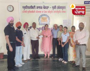 ਦਲਜੀਤ ਕੌਰ/ਧੂਰੀ, 31 ਅਗਸਤ, 2023: ਰੋਟਰੀ ਕਲੱਬ ਧੂਰੀ ਵੱਲੋਂ ਯੂਨੀਵਰਸਿਟੀ ਕਾਲਜ ਬੇਨੜਾ ਵਿਖੇ ਪੜ੍ਹਨ ਲਈ ਗਰੀਬ ਪਰਿਵਾਰਾਂ ਨਾਲ ਸਬੰਧਤ 9 ਵਿਦਿਆਰਥੀਆਂ ਦੇ ਦਾਖ਼ਲੇ ਲਈ 68,850/- ਰੁਪਏ ਦਾ ਚੈੱਕ ਕਾਲਜ ਪ੍ਰਿੰਸੀਪਲ ਨੂੰ ਕਲੱਬ ਦੇ ਪ੍ਰਧਾਨ ਸ੍ਰੀ ਮੱਖਣ ਲਾਲ ਗਰਗ ਵੱਲੋਂ ਭੇਟ ਕੀਤਾ ਗਿਆ। ਇਸ ਸਬੰਧੀ ਜਾਣਕਾਰੀ ਦਿੰਦੇ ਕਾਲਜ ਪ੍ਰਿੰਸੀਪਲ ਡਾ. ਪਰਮਜੀਤ ਕੌਰ ਨੇ ਕਿਹਾ ਕਿ ਇਹਨਾਂ 9 ਵਿਦਿਆਰਥੀਆਂ ਵਿੱਚ 2 ਵਿਦਿਆਰਥੀ ਐੱਮ.ਏ., ਐੱਮ.ਕਾਮ ਅਤੇ 7 ਵਿਦਿਆਰਥੀ ਗ੍ਰੈਜੂਏਸ਼ਨ ਕਰਨ ਲਈ ਦਾਖਲ ਹੋਏ ਹਨ।
