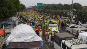 ਮੁਹਾਲੀ, 27 ਨਵੰਬਰ/ਸੰਯੁਕਤ ਕਿਸਾਨ ਮੋਰਚੇ ਦੇ ਸੱਦੇ ’ਤੇ 32 ਕਿਸਾਨ ਜਥੇਬੰਦੀਆਂ ਵੱਲੋਂ ਇਥੇ ਜਗਤਪੁਰਾ ਟੀ-ਪੁਆਇੰਟ (ਮੁਹਾਲੀ-ਚੰਡੀਗੜ੍ਹ ਦੀ ਸਾਂਝੀ ਹੱਦ) ਉੱਤੇ ਕੀਤਾ ਜਾ ਪ੍ਰਦਰਸ਼ਨ ਅੱਜ ਦੂਜੇ ਦਿਨ ਵੀ ਜਾਰੀ ਰਿਹਾ। ਅੱਜ ਕਿਸਾਨ ਜਥੇਬੰਦੀਆਂ ਦੇ ਪ੍ਰਮੁੱਖ ਆਗੂਆਂ ਨੇ ਮੀਟਿੰਗ ਕੀਤੀ, ਜਿਸ ਵਿੱਚ ਭਲਕੇ 28 ਨਵੰਬਰ ਨੂੰ ਚੰਡੀਗੜ੍ਹ ਵਿੱਚ ਦਾਖ਼ਲ ਹੋ ਕੇ ਪੰਜਾਬ ਦੀ ਰਾਜਧਾਨੀ ਦੀ ਘੇਰਾਬੰਦੀ ਕਰਨ ਬਾਰੇ ਵਿਚਾਰ ਵਟਾਂਦਰਾ ਕੀਤਾ ਗਿਆ। ਪੰਜਾਬ ਪੁਲੀਸ ਅਤੇ ਚੰਡੀਗੜ੍ਹ ਪੁਲੀਸ ਵੱਲੋਂ ਸਖ਼ਤ ਸੁਰੱਖਿਆ ਇੰਤਜ਼ਾਮ ਕੀਤੇ ਗਏ ਅਤੇ ਖ਼ੁਫ਼ੀਆ ਵਿੰਗ ਵੱਲੋਂ ਕਿਸਾਨ ਗਤੀਵਿਧੀਆਂ ’ਤੇ ਤਿੱਖੀ ਨਜ਼ਰ ਰੱਖੀ ਜਾ ਰਹੀ ਹੈ। ਕਿਸਾਨ ਅੰਦੋਲਨ ਤਿੰਨਾਂ ਲਈ ਹੈ ਪਰ ਸੂਤਰ ਦੱਸਦੇ ਹਨ ਕਿਸਾਨੀ ਸੰਘਰਸ਼ ਜ਼ਿਆਦਾ ਦਿਨ ਜਾਰੀ ਰਹਿਣ ਦੇ ਆਸਾਰ ਬਣ ਸਕਦੇ ਹਨ।
