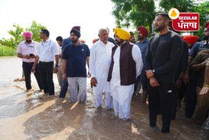 Daljeet Kaur/Sangrur, July 13, 2023: Breaking the jinx of CM inspecting the water logged fields through aerial surveys, the Punjab Chief Minister Bhagwant Mann today