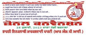 ਦਲਜੀਤ ਕੌਰ/ਬਰਨਾਲਾ, 25 ਜੁਲਾਈ, 2023: ਭਾਰਤੀ ਇਨਕਲਾਬੀ ਮਾਰਕਸਵਾਦੀ ਪਾਰਟੀ (ਆਰ.ਐੱਮ.ਪੀ.ਆਈ.) ਦੀ ਰਾਜ ਕਮੇਟੀ ਵੱਲੋਂ 28 ਜੁਲਾਈ 2023, ਸ਼ੁੱਕਰਵਾਰ ਨੂੰ ਬਰਨਾਲਾ ਦੀ ਅਨਾਜ ਮੰਡੀ ਵਿਖੇ ਮਾਲਵਾ